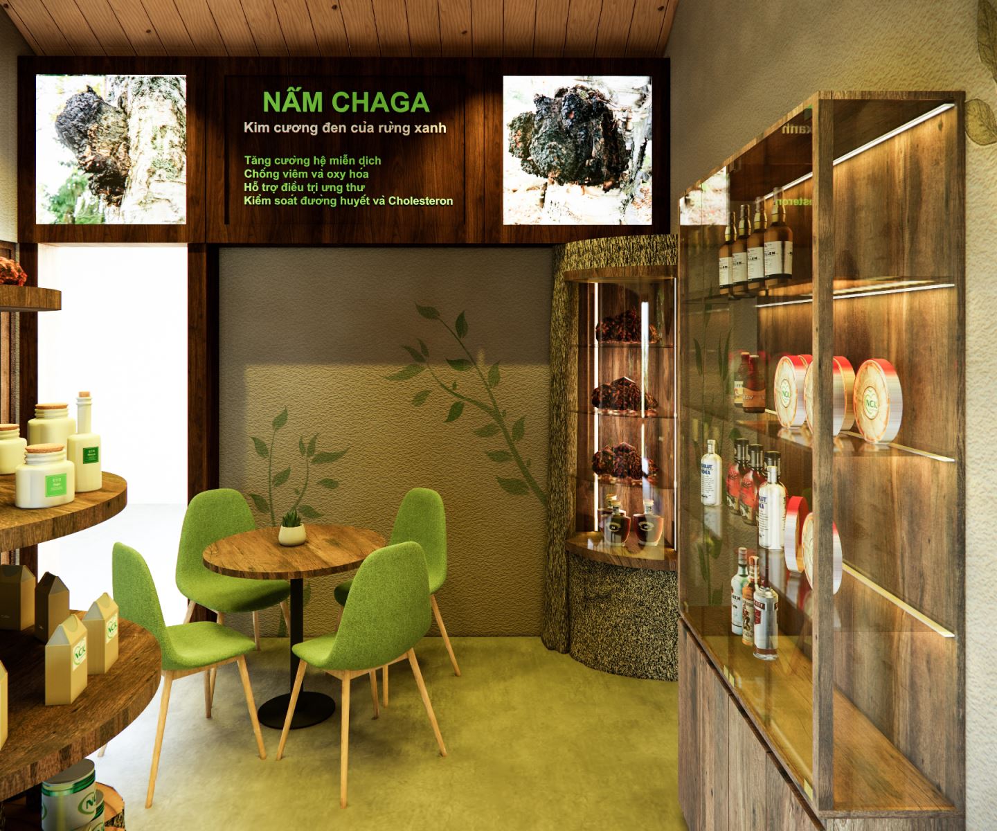 Thiết kế showroom thực phẩm dinh dưỡng – Không gian trưng bày nấm Chaga & yến sào