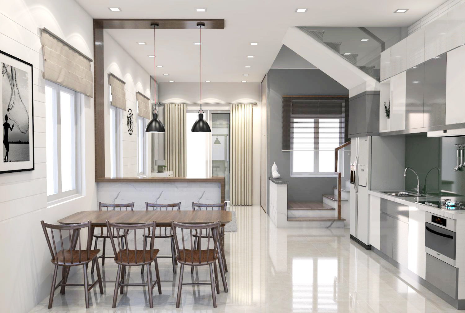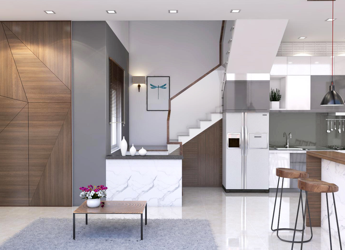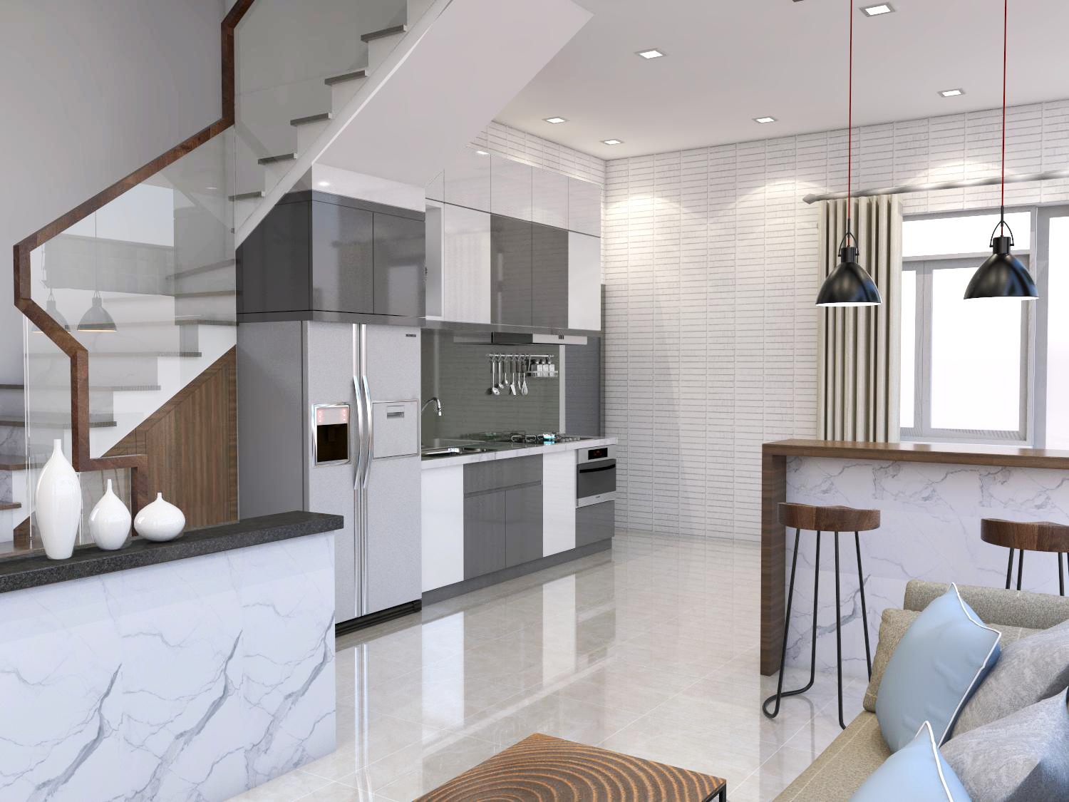 Ánh sáng là yếu tố quan trọng trong cải tạo nhà phố. Lupo Design tập trung mở rộng các khoảng lấy sáng, kết hợp màu sắc và vật liệu phản xạ ánh sáng tốt, giúp ngôi nhà luôn thông thoáng, giảm cảm giác bí bách và nâng cao chất lượng sống hằng ngày.
