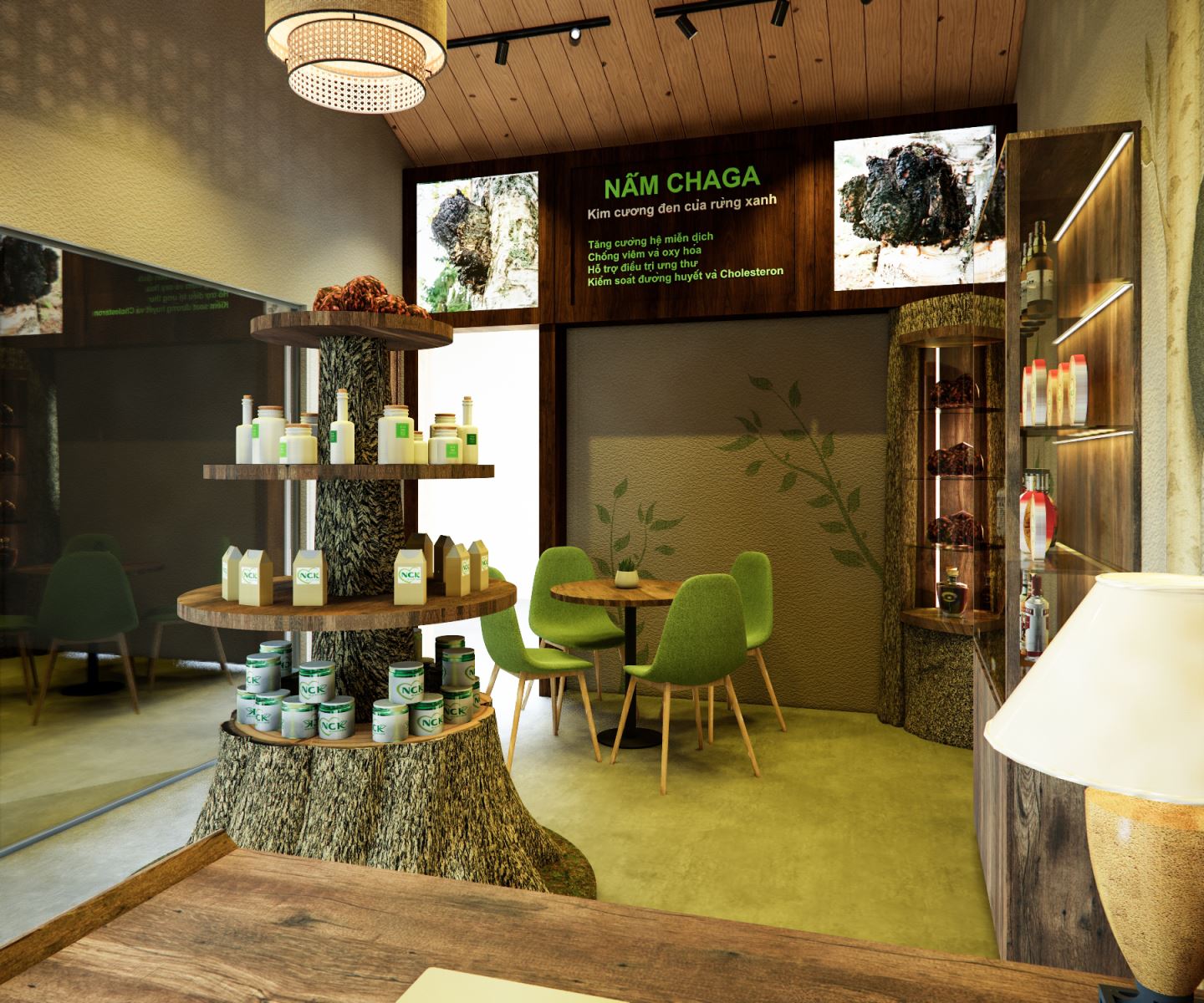 Thiết kế showroom thực phẩm dinh dưỡng – Không gian trưng bày nấm Chaga & yến sào